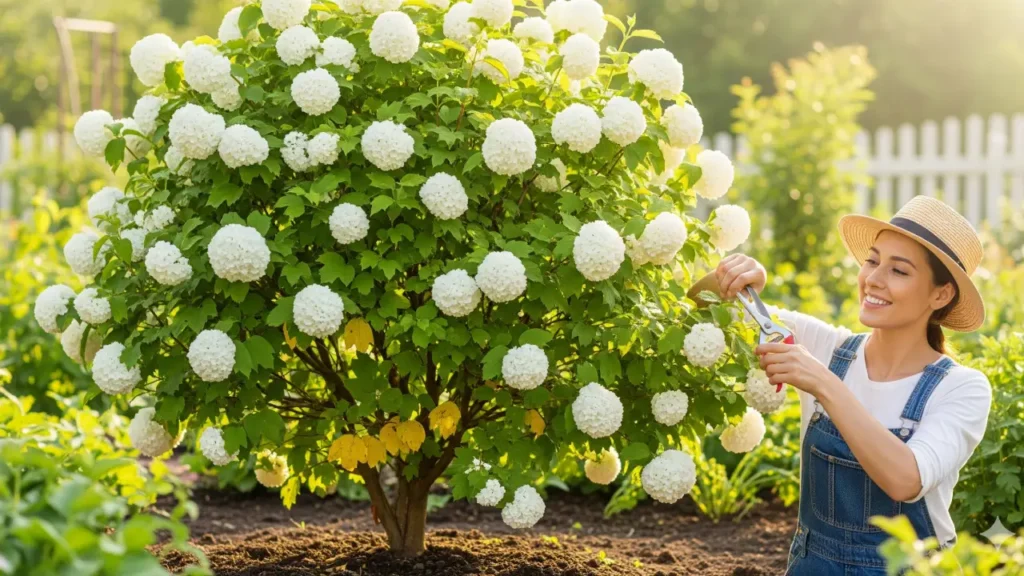 Muita gente acha que a bola-de-neve não precisa de poda, mas esse é um erro comum. Esse arbusto responde muito bem às podas de limpeza e formação, que ajudam a renovar os galhos, estimular brotações e garantir uma floração mais intensa.