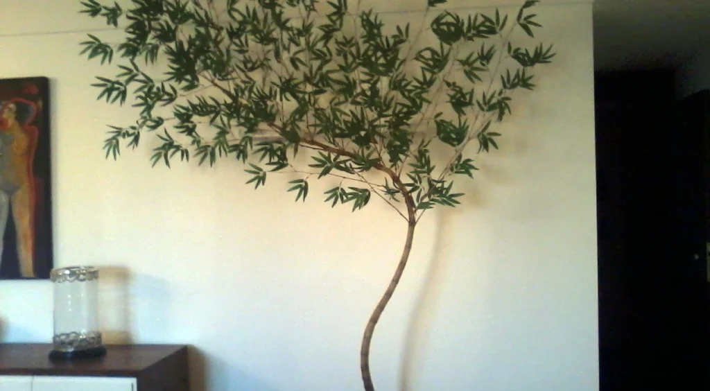 Também existem exemplares com colmos mais finos e tons de verde amarelado, que são perfeitos para espaços com menos luminosidade ou para composições com outras plantas ornamentais. Essa variação tem se tornado cada vez mais comum em projetos de bambu decorativo em apartamentos e escritórios, onde a leveza visual é essencial.